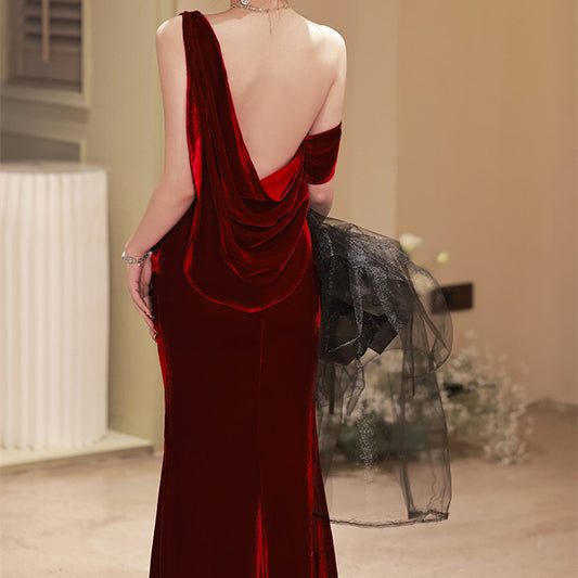 Robe en Velours à Épaule Dénudée – Élégance Décontractée